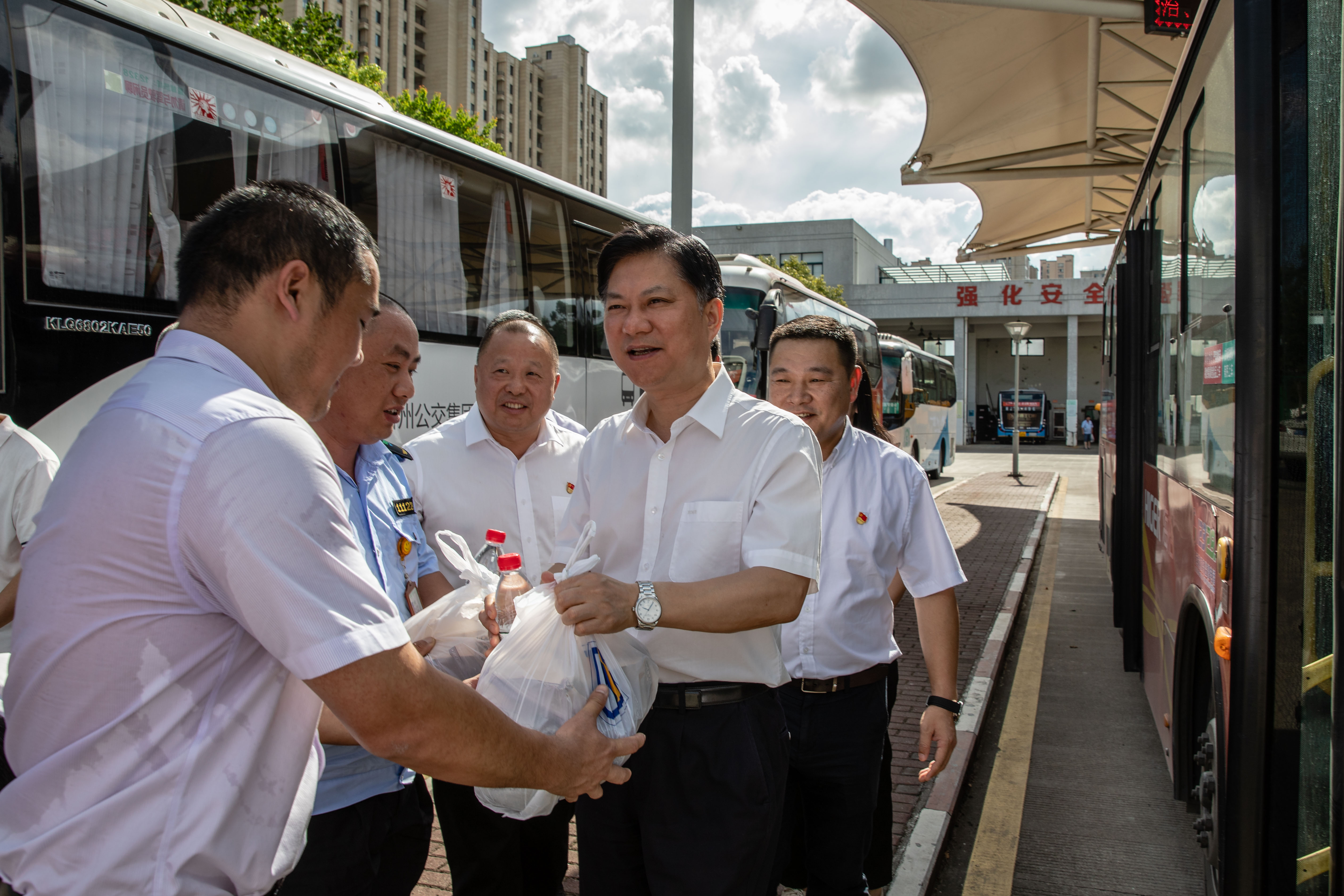 7月31日下午,副市长林先华专程带队来到新葡京 巴士公司,看望慰问高温天气下坚守岗位的公交一线职工,表达了对一线公交职工“辛苦我一个,方便千万家”的敬意,并送上防暑降温物品。市政府副秘书长黄人川、新葡京 党委书记、董事长兼总经理石再国,新葡京 党委委员、副总经理兼巴士公司董事长、总经理蒋朝军参加慰问。