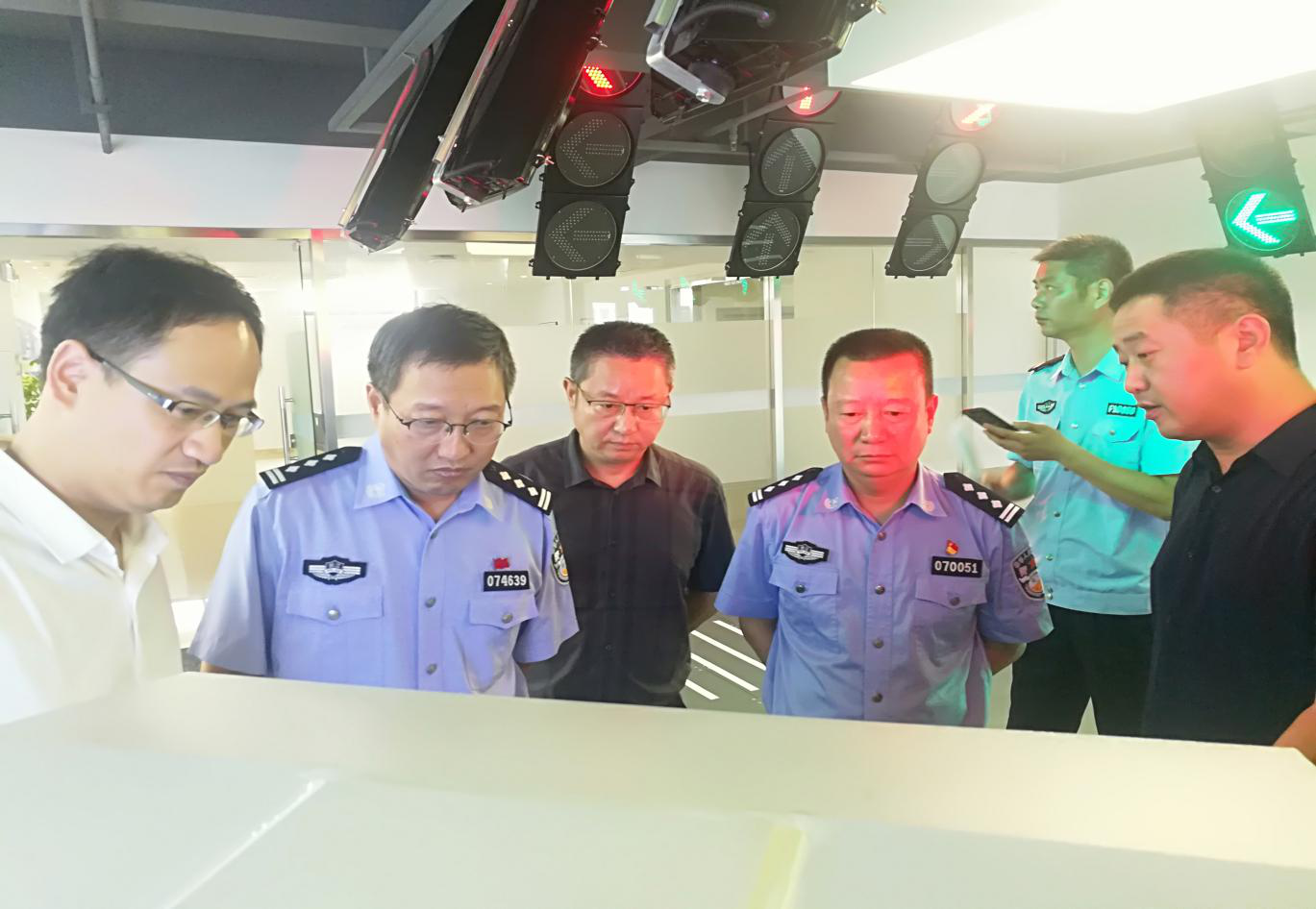 8月15日,台州市公安局交通警察局副局长江兵一行莅临通号畅行公司参观指导工作,集团党委委员、副总经理韩克华,通号畅行公司总经理何伟挺、副总经理郑琳斌陪同。