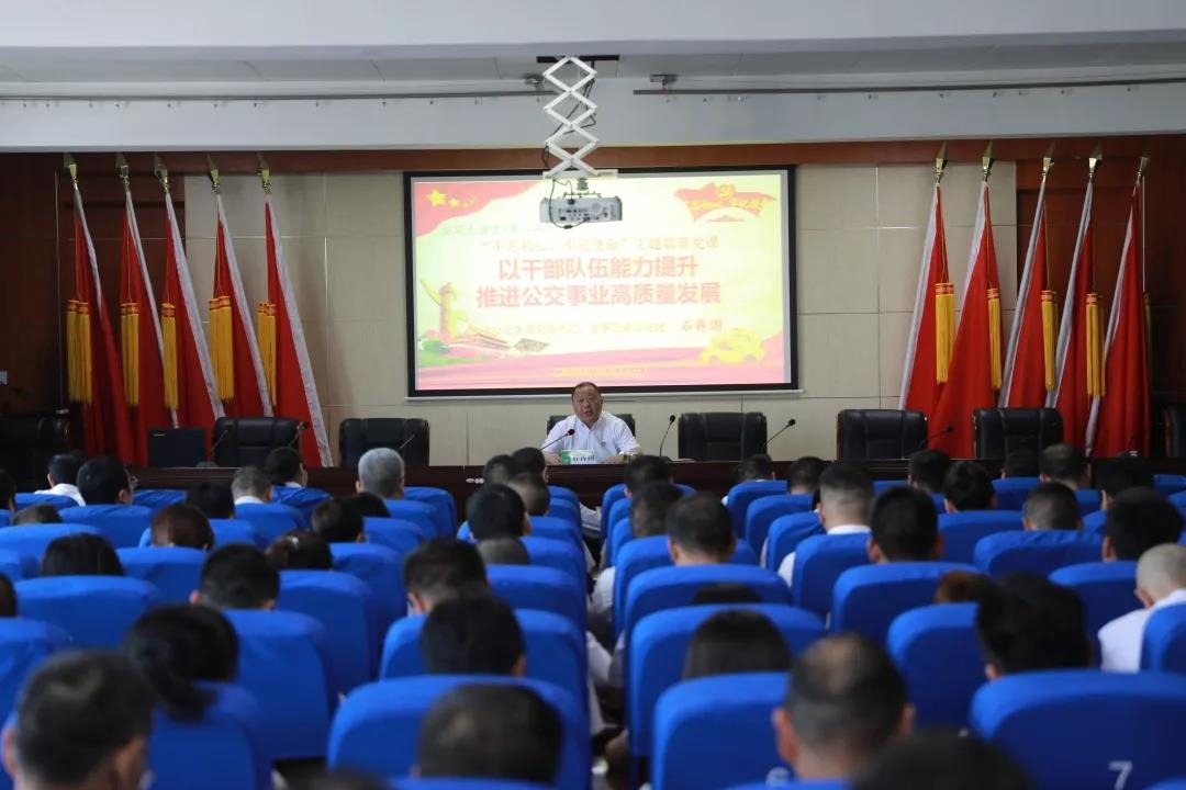 石再国结合集团发展实际,从开展学习教育的体会和感悟、公交队伍建设的问题与差距、加强干部队伍建设的有关思考三大方面给全体党员干部上了一堂发人深省的专题党课。他表示,通过认认真真学原文、读原著、悟原理,最大的体会和感悟是,在实现我国社会主义现代化和中华民族伟大复兴的新征途上,必须始终高举中国特色社会主义伟大旗帜,始终坚持习近平新时代中国特色社会主义思想,始终坚持中国共产党的领导,切实增强“四个意识”、坚定“四个自信”、做到“两个维护”,进一步砥砺奋斗品格,以顽强的拼搏精神和一往无前的气势,共同向着实现中华民族伟大复兴的中国梦奋勇前进。