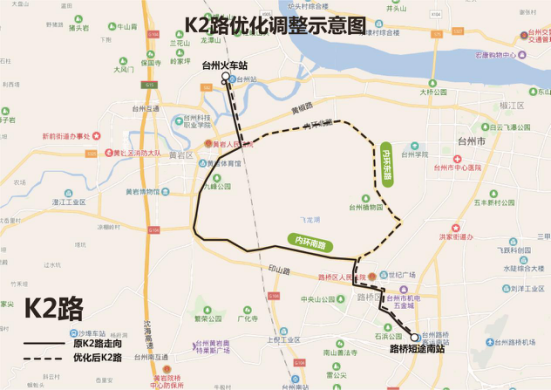 为进一步方便路桥区和黄岩区市民往返于台州市妇女儿童医院(中村)的快速公交出行,经相关主管部门同意许可后,对原K2路进行优化调整。