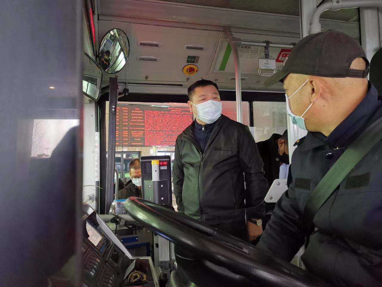 党委委员、副总经理蒋朝军带队到各公交场站进行防控、春运安全工作巡查,要求各公司查漏补缺,进一步加强体温测量器消毒、湖北籍员工及亲属的动态调查、口罩采购等工作。
